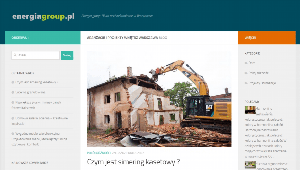 Verkkosivusto energiagroup.pl on omistettu arkkitehtonisille ratkaisuilla ja sisustussuunnittelulle Varsovassa. Täältä löytyy tietoa ammatillisista palveluista, joita tarjoaa arkkitehtitoimisto, joka erikoistuu ainutlaatuisten ja toimivien tilojen luomiseen. Asiantuntijatiimi kehittää projekteja, jotka ottavat huomioon asiakkaiden yksilölliset tarpeet sekä nykyaikaiset suunnittelutrendit. Huolellisuus yksityiskohdissa ja korkea laatu ovat toimiston keskeisiä periaatteita. Verkkosivusto toimii inspiraation lähteenä niille, jotka haluavat muuttaa asuin- tai liiketilaansa, tarjoten monenlaisia ideoita ja konsepteja.