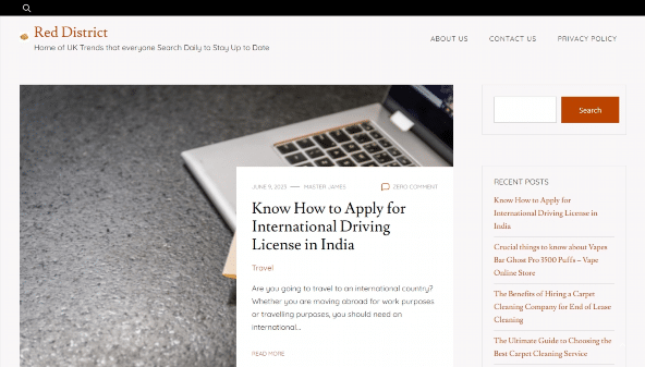 Le site reddistrict.co.uk est dédié aux tendances actuelles au Royaume-Uni, couvrant divers domaines de la vie et des affaires. Les thématiques incluent le business, le marketing numérique, l'éducation, l'immobilier, les finances, la mode, le divertissement, la gastronomie, la rénovation et l'amélioration de l'habitat, la santé, le mode de vie, les guides juridiques, les jeux, l'éducation des enfants, le soin des animaux, les technologies, les médias sociaux et les voyages. Des articles sont publiés pour mettre en lumière les tendances clés, des conseils et des actualités dans ces domaines, permettant ainsi aux visiteurs de rester informés des événements récents et des évolutions dans différents segments de la société et de l'économie.