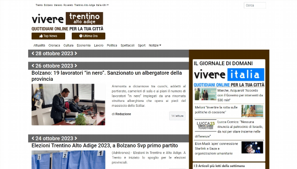Le site viveretrentinoaltoadige.it est une ressource d'information dédiée à la région du Trentin-Haut-Adige en Italie. Il couvre les événements actuels, les manifestations culturelles et les nouvelles concernant à la fois les villes et les zones rurales. La plateforme sert de source d'information pour les habitants et les touristes intéressés par la vie locale, les traditions et les beautés naturelles de la région. Les utilisateurs peuvent y trouver des articles sur la gastronomie, l'art et l'histoire, ainsi que des recommandations pour les voyages et les loisirs. Le site vise à offrir une vision complète de la vie dans le Trentin-Haut-Adige, en mettant en avant l'unicité et la diversité de cette région italienne.