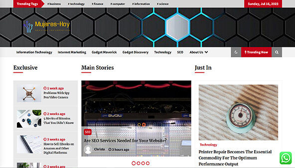 A mujeres-hoy.com weboldal a számítástechnika, az internetes marketing és a kütyük aktuális témáival foglalkozik. Hasznos cikkeket és áttekintéseket kínál a felhasználóknak, amelyek segítenek eligibilizálni a gyorsan változó technológiai világban. A megbízható anyagok az SEO, a webtárhely és az internetes üzlet kérdéseit ölelik fel, gyakorlati tanácsokat és ajánlásokat nyújtva az olvasóknak. A platform célja, hogy elérje azokat, akiket érdekelnek a modern technológiai vívmányok és azok mindennapi életben való alkalmazása.