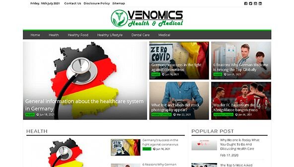 A venomics.eu weboldal az egészség és életmód kérdéseivel foglalkozik. Főként a modern megközelítésekre összpontosít az egészség megőrzésében, beleértve a kiegyensúlyozott táplálkozást, a fizikai aktivitást és a betegségek megelőzését. Olyan anyagokat publikálnak, amelyek a legfrissebb orvosi kutatásokkal és hírekkel foglalkoznak, valamint ajánlásokat adnak az életminőség javítására. Kiemelt figyelmet kap az egészséges táplálkozásról szóló információ és annak hatása a szervezetre. A tartalom fontos részét képezik a fogászati ellátásról és az egészség megőrzésére irányuló orvosi eljárásokról szóló cikkek.