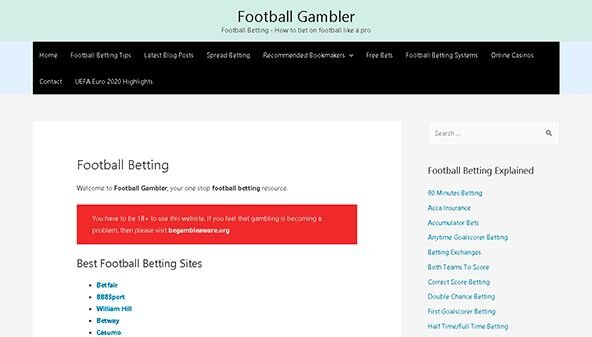 Articolo pubblicitario sul Giocatore di calcio (footballgambler.co.uk)