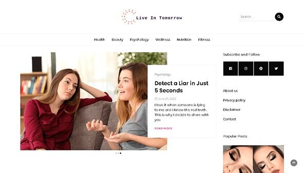 Svetainė liveintomorrow.com siūlo vartotojams naudingą medžiagą sveikatos, grožio ir psichologijos temomis. Ji skirta žmonėms, siekiantiems pagerinti savo gyvenimo kokybę ir rasti harmoniją kasdieniame gyvenime. Čia galima rasti straipsnių, skirtų šiuolaikinėms sveikatingumo metodikoms, mitybai ir fitnesui, taip pat patarimų odos priežiūrai ir psichologinei gerovei. Šis išteklius yra patikimas informacijos šaltinis, skatinantis sąmoningą požiūrį į savo sveikatą ir išvaizdą. Svetainė padeda vartotojams ne tik suprasti savęs priežiūros svarbą, bet ir teikia praktinius patarimus, kaip pasiekti užsibrėžtus tikslus.