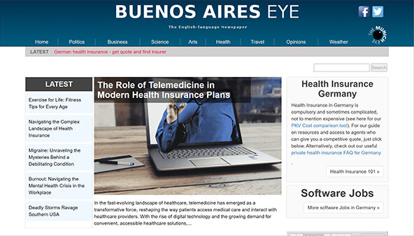 O site buenosaireseye.com é um recurso informativo dedicado a diversos aspectos da vida na Alemanha. O foco principal está no seguro de saúde privado, permitindo que os usuários obtenham informações atualizadas sobre as opções e condições de cobertura. Além disso, o recurso aborda temas relacionados a vagas de engenharia, fornecendo informações sobre oportunidades de carreira nessa área. A arte e a cultura ocupam um lugar importante, oferecendo aos leitores a chance de mergulhar no mundo da criatividade e dos eventos culturais. Aspectos relevantes de negócios e política são abordados com o objetivo de informar o público sobre eventos e tendências atuais.