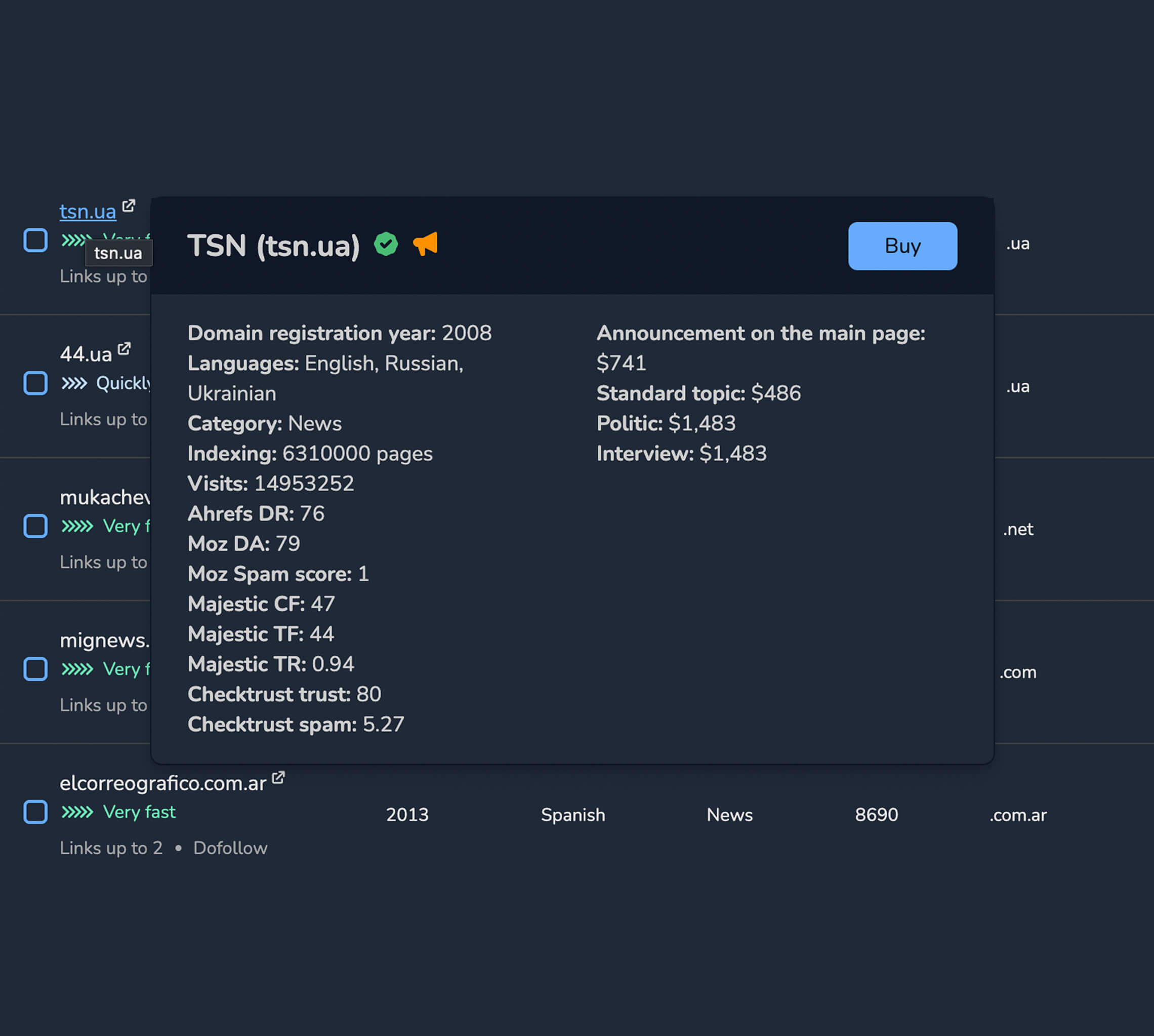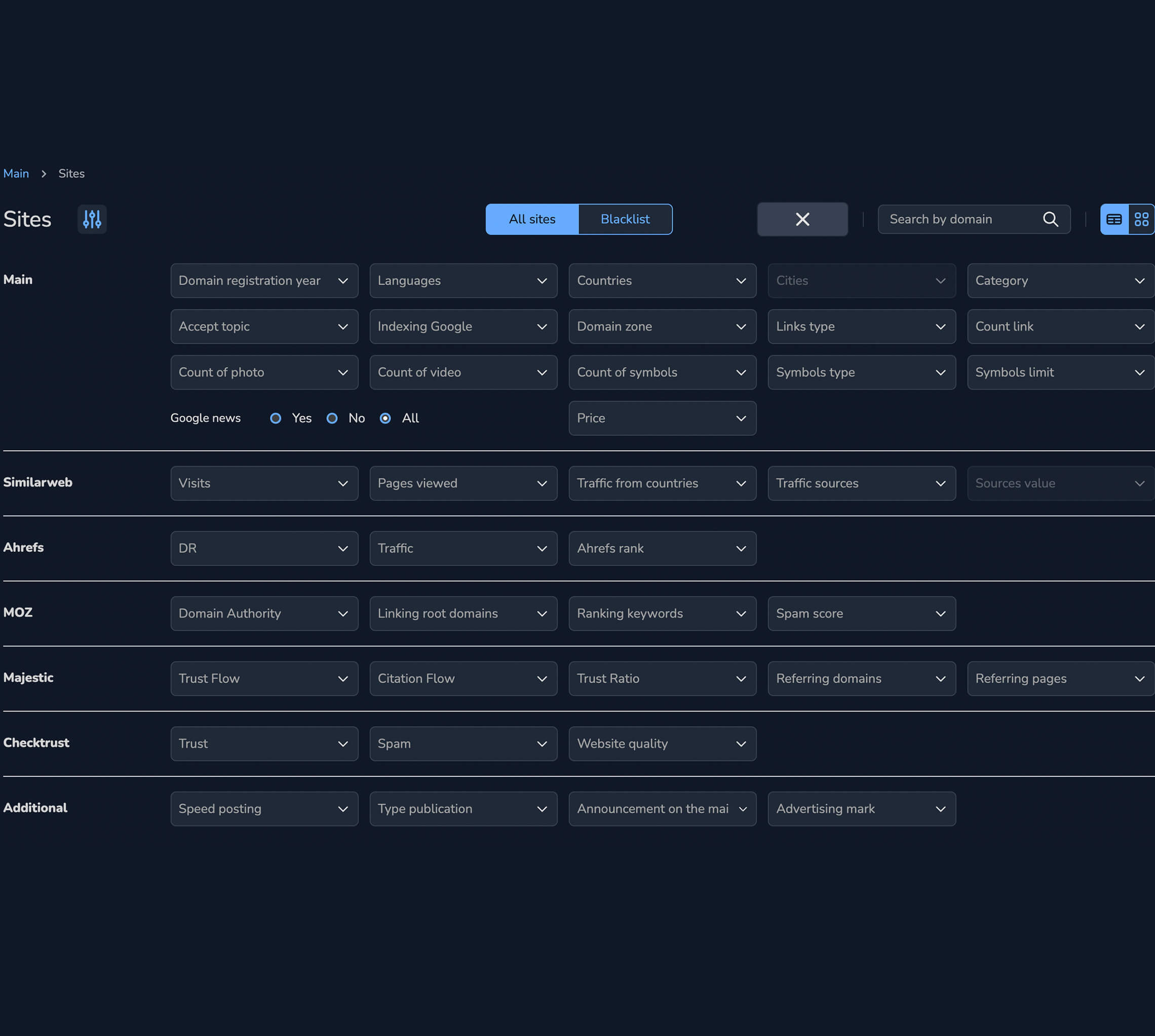 - Traffic Quality & GEO-Consistency: Анализ источников трафика (Ahrefs/SimilarWeb). Отсекаем площадки с аномальными всплесками или несоответствием регионального трафика или фактом смены тематики сайта.