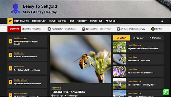 Сайт easytosellgold.com посвящён вопросам здоровья, фитнеса и правильного образа жизни. Тематика охватывает такие направления, как баланс тела, фитнес-поток, гармония здоровья, диеты и тренировки. Ресурс предлагает материалы и советы, направленные на поддержание физической формы и улучшение общего самочувствия. Контент ориентирован на практические рекомендации по оздоровлению и активному образу жизни без излишней теории или повторений.