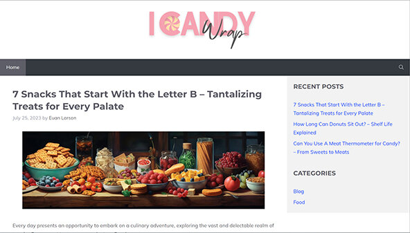 Сайт icandywrap.com присвячений різноманітним закускам та солодким ласощам. На сторінках ресурсу представлені матеріали, що розкривають особливості різних видів снеків, поради щодо їх вибору та зберігання, а також рецепти і рекомендації з приготування. Тематика охоплює як солодкі, так і солоні закуски, включаючи популярні продукти та незвичайні поєднання. Контент орієнтований на любителів смачної їжі, які шукають корисну та практичну інформацію про снекову продукцію та способи її вживання.